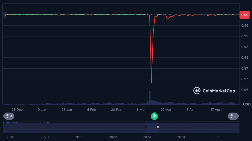 Here is a great example of a real depeg from this week. Dropped from $1.00 to $0.20, only recovered to $0.94.